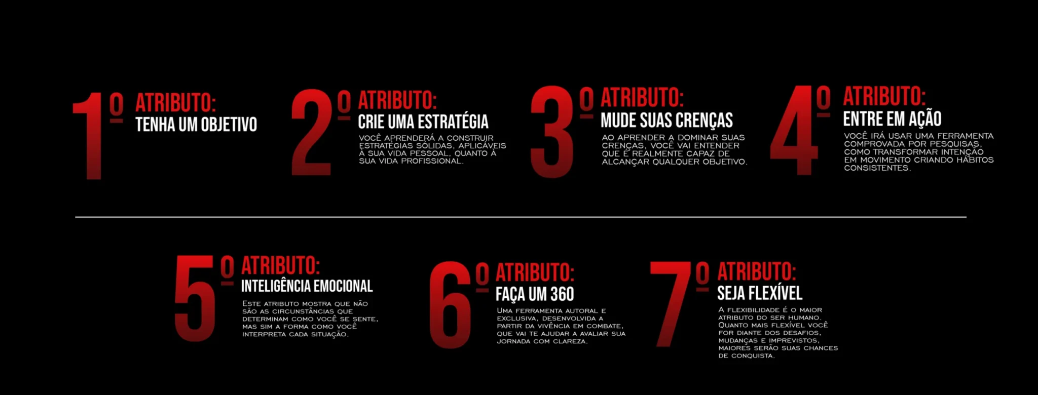 O treinamento foca na construção de uma mente resiliente e estratégica, utilizando cases práticos para ensinar liderança e tomada de decisão sob alta pressão.